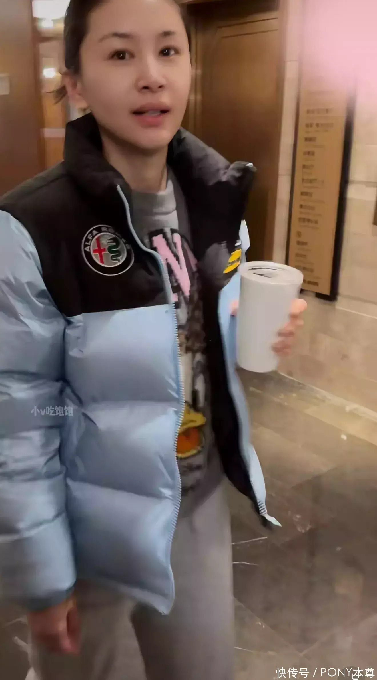 除了全黑色穿搭,她的羽绒服搭配的也很惊艳!比如最近被网友偶遇的王子文,身穿一款蓝白撞色短款羽绒服,内搭灰色开通印花卫衣,下半身搭配灰色卫裤,怼脸拍照依然肤白貌美!