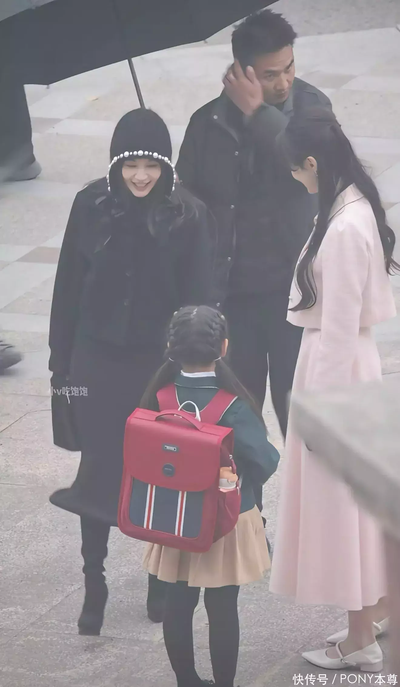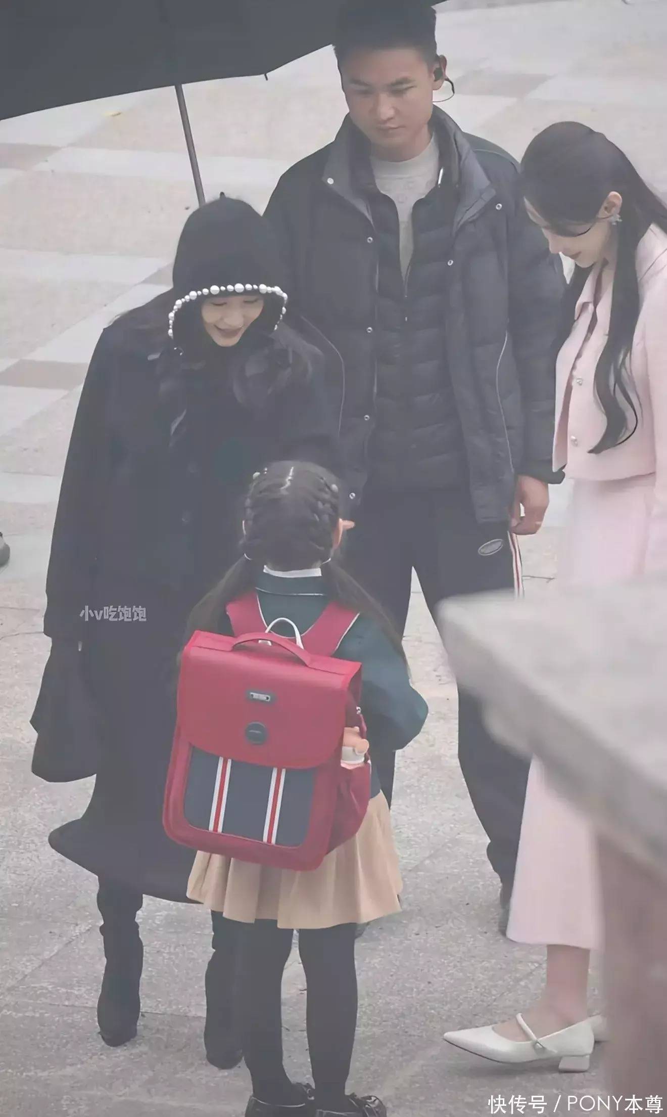在搭配上,她也很会选配饰。比如这次选择的珍珠装饰的黑色针织帽,搭配她一头长卷发,就像洋娃娃一样!一下俏皮了许多!