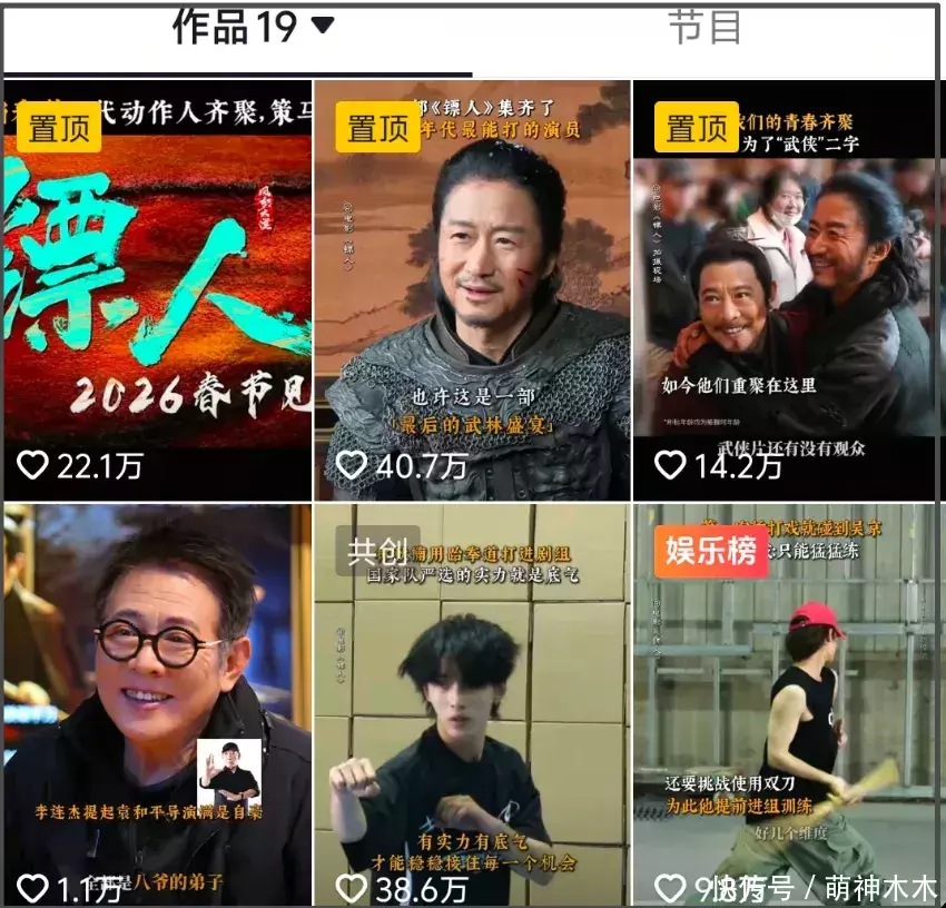 ——三个置顶视频发布时间都超过24小时,点赞最多才40多万,带着吴京宣传的视频热度还比不上小鲜肉骑马。